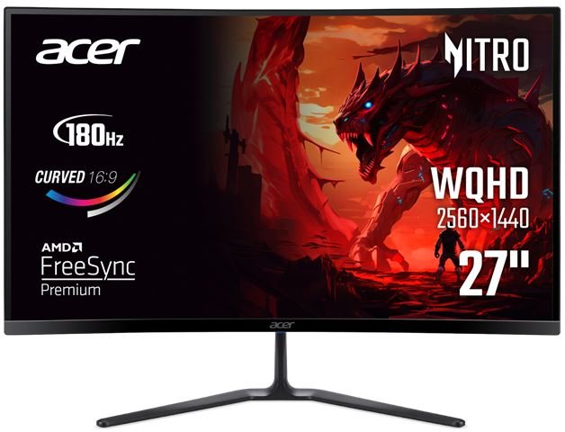 Nitro ED270US3BMIIPX, 27″, 16:9, VA, 2560×1440, 250 cd/m2, 180Hz, 5000:1, 178°/178°, 1ms, HDR10, DP, 2x HDMI, Audio Out, Speakers, tilt, VESA, Black, 2Y