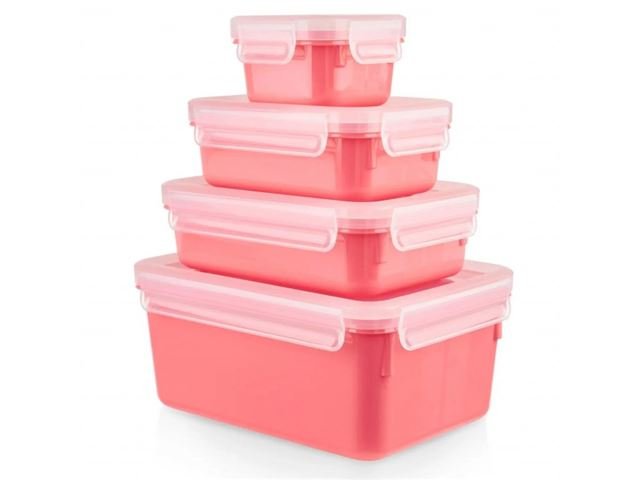 Set od 4 kom plastičnih posuda za kranu, zapremnine 0,2 l, 0,55 l, 0,8 l i 2,2 l coralno crvene boje MASTER SEAL COLOUR EDITION N1031010