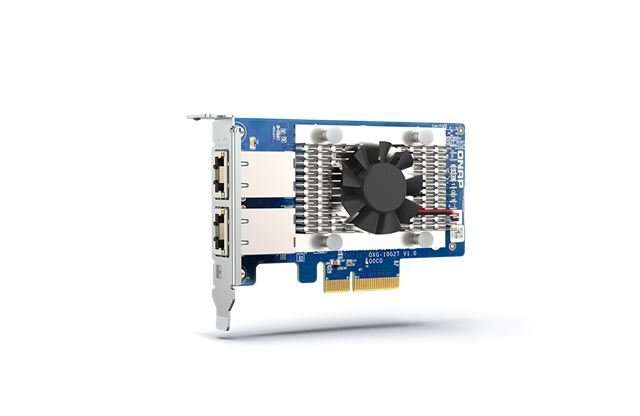 QXG-10G2T, Dual-port BASET 10GbE network expansion card; low-profile form factor; PCIe Gen3 x4; Aquantia AQC107, 10Gbps/5Gbps/2.5Gbp s/1Gbps/100Mbps