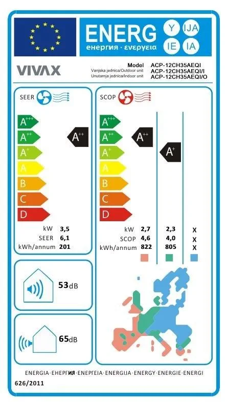 Vivax klima uređaj ACP-12CH35AEQI R32 INVERTER 3.52/3.81 KW A++