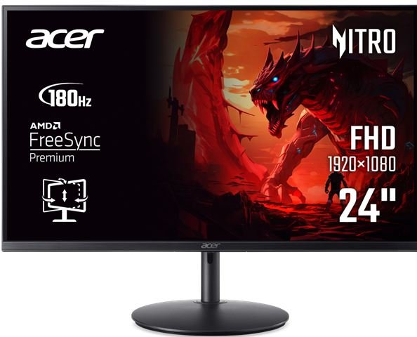Nitro XF240YM3biiph, 23.8″, 16:9, IPS, 1920×1080, 250 cd/m2, 180Hz, 4000:1, 178°/178°, 1ms, HDR10, DP, 2x HDMI, HAS, tilt, swivel, VESA, Black, 2Y